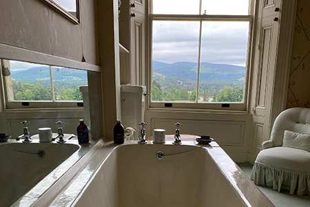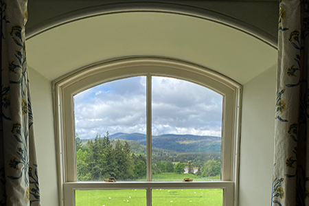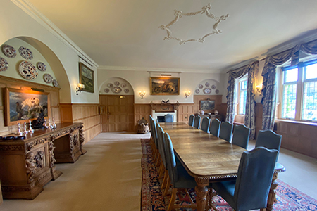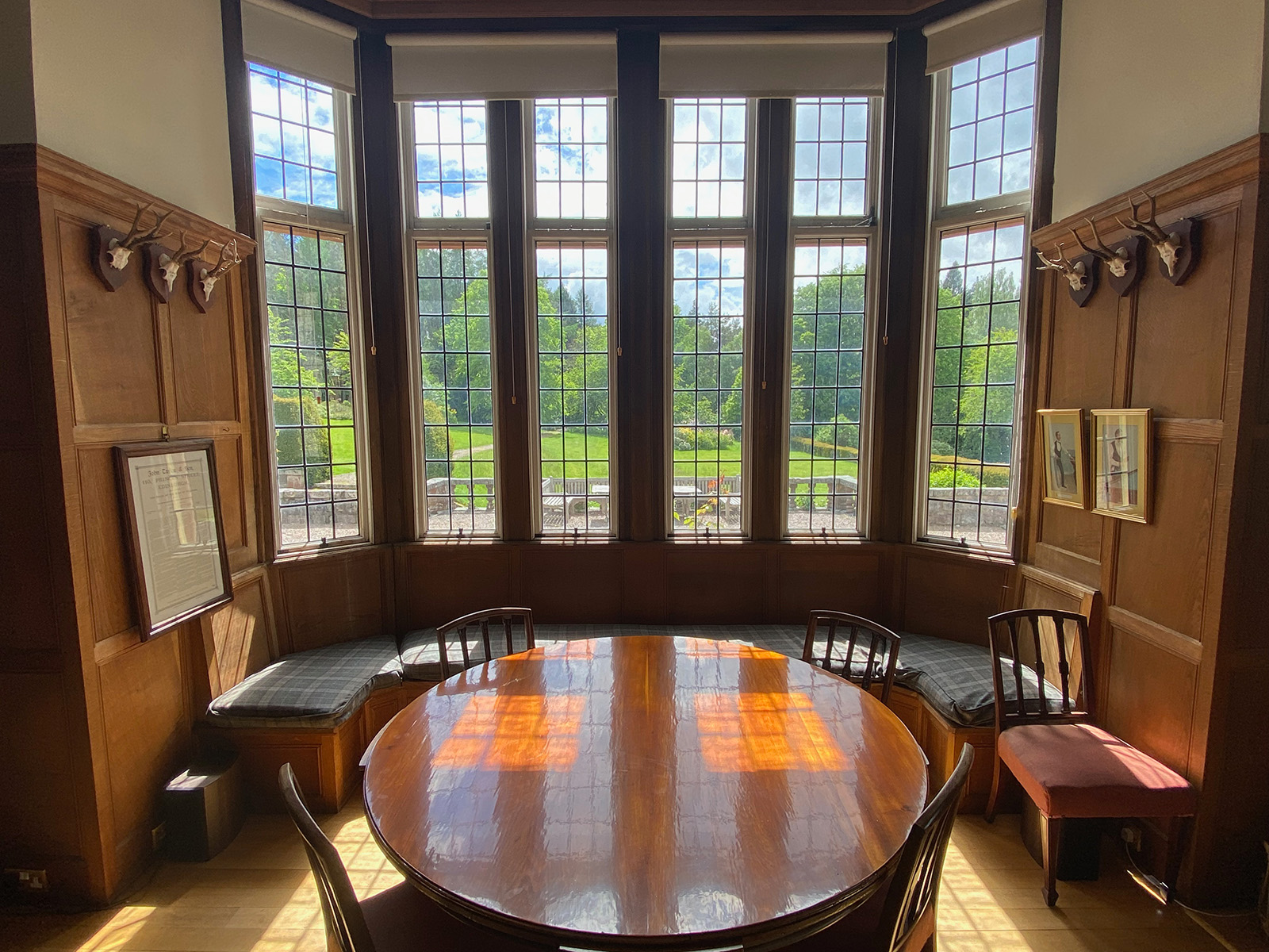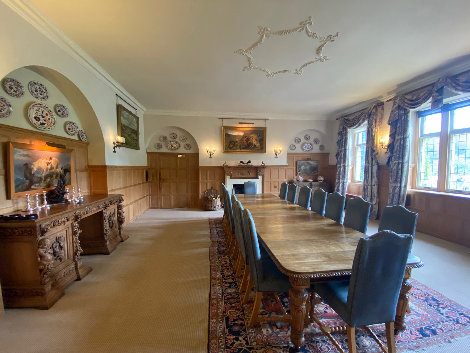 Approached via a long private wooded drive the house sits in a stunning position overlooking Deeside surrounded by its well kept gardens. The house is in very good decorative order whilst retaining its homely and traditional ‘feel’ and it lends itself perfectly to both intimate groups and grand entertaining.